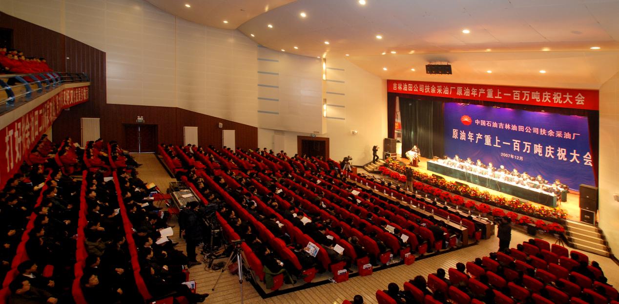 2006年底,吉林油田公司乾安采油厂原油产量跨越100万吨庆祝大会现场。