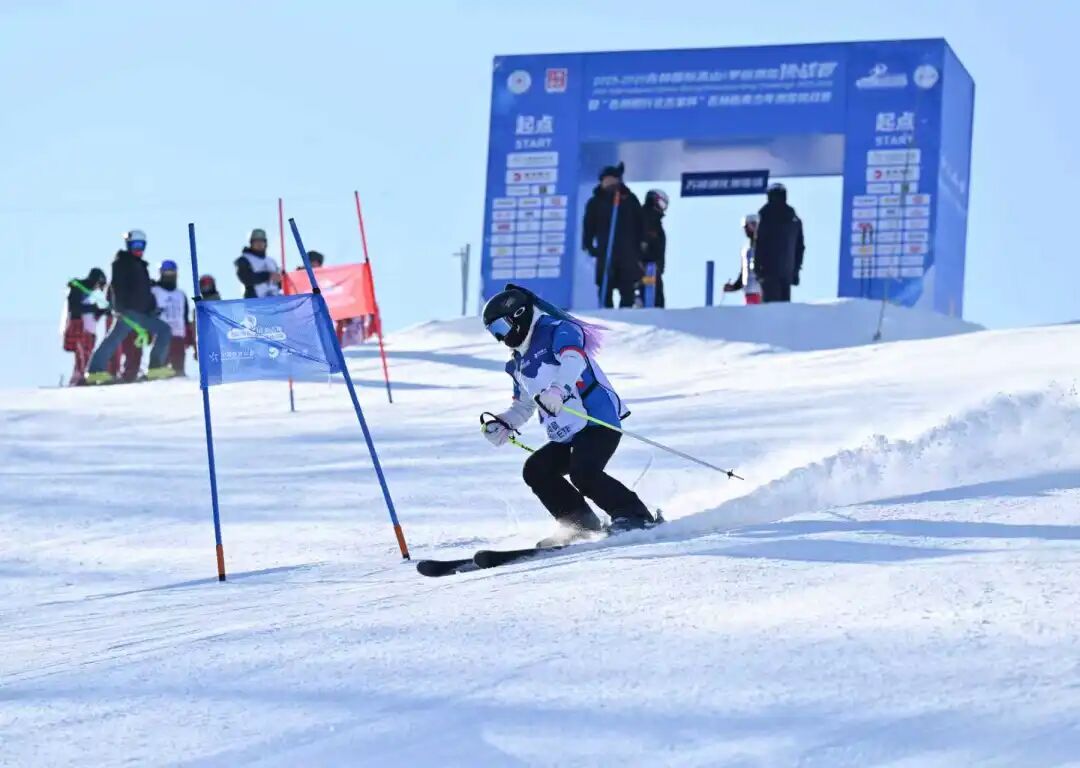 皑皑雪道上,经验丰富的成年选手优雅转弯、迅猛冲刺,展现出成熟与自信;朝气蓬勃的青少年选手,以无畏的勇气和拼搏的精神突破自我、挑战极限。