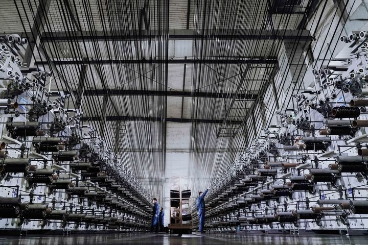 工人在吉林化纤集团国兴碳纤维有限公司碳化二车间作业。 新华社记者 许畅 摄