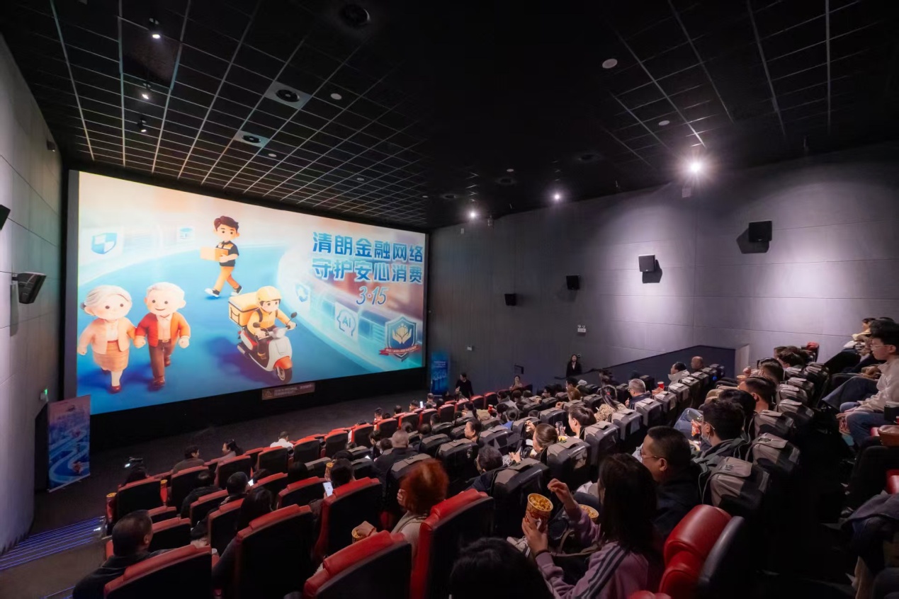 影厅外,到场客户有序签到入场,工作人员贴心发放金融消保宣传折页,把实用、易懂的金融安全知识与暖心服务送到群众身边。影厅内,播放消保宣传片、反诈短视频与金融知识动画,以生动直观、喜闻乐见的形式普及金融消保常识,为整场活动营造浓厚的宣教氛围。